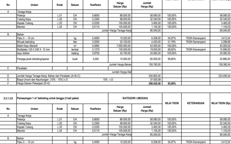 3. Menentukan Harga Satuan: Meneliti harga material dan upah tenaga kerja di pasaran untuk menentukan harga satuan setiap item pekerjaan.