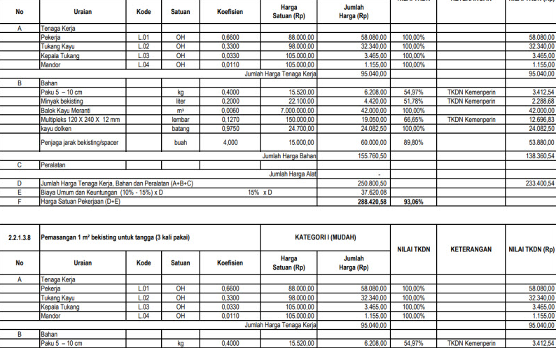 - Menentukan Harga Satuan: Meneliti harga material dan upah tenaga kerja di pasaran untuk menentukan harga satuan setiap item pekerjaan.